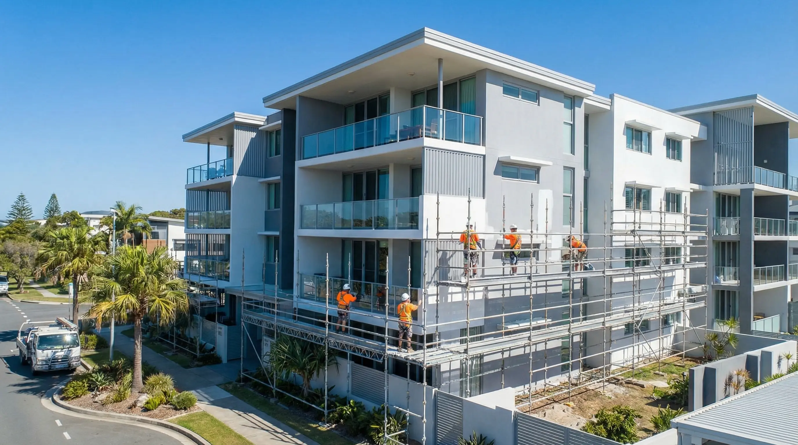 Safe, compliant execution with daily site clean-ups and a final walkthrough with the Body Corporate Manager to sign off on every detail.